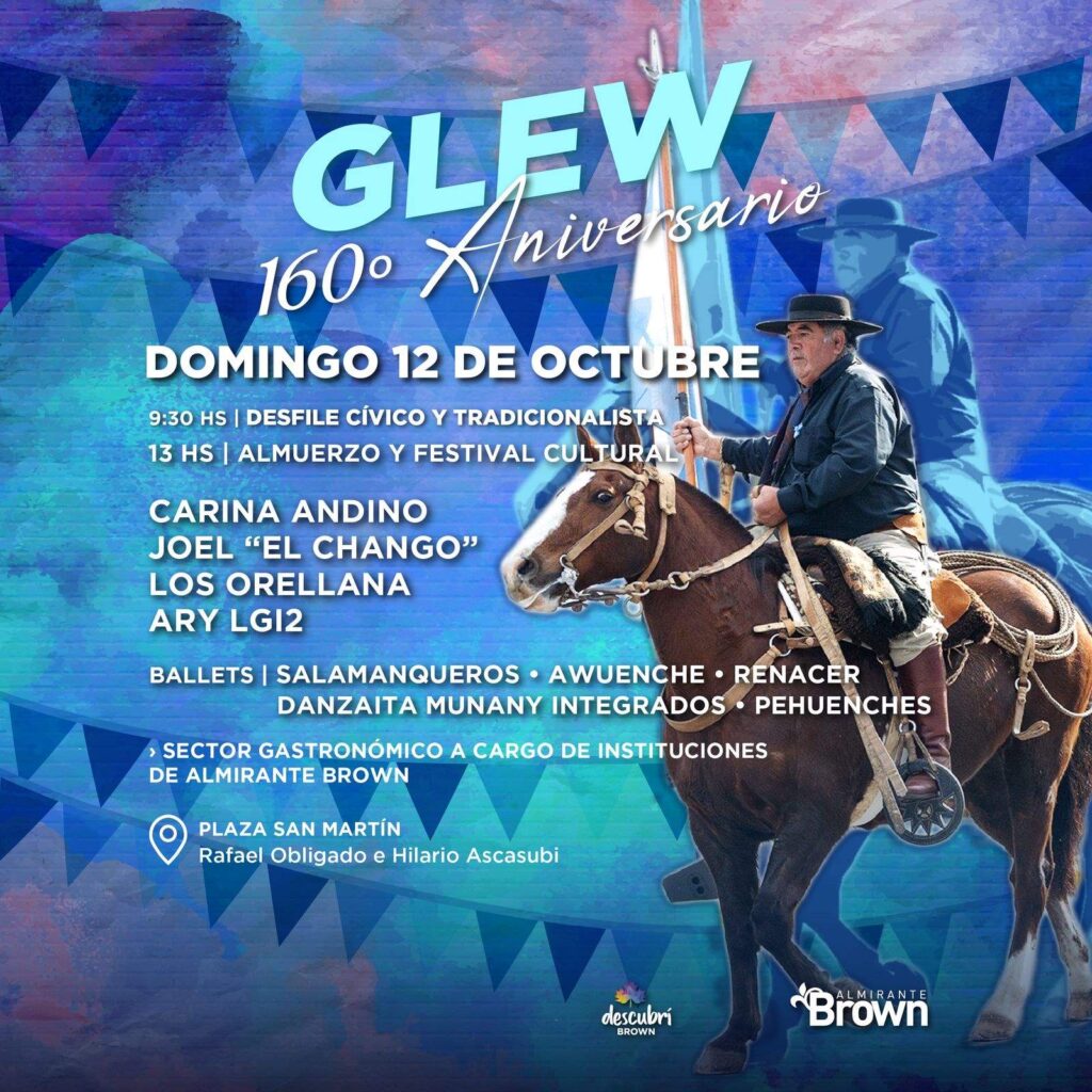 El domingo 12, la emblemática Plaza San Martín (Rafael Obligado y Hilario Ascasubi) será el epicentro de los festejos por los 160 años de la localidad de Glew. Desde las 10 de la mañana y hasta entrada la noche, habrá actividades para todas las edades: un desfile cívico y tradicionalista, almuerzo popular y un Festival Cultural con destacados artistas locales.